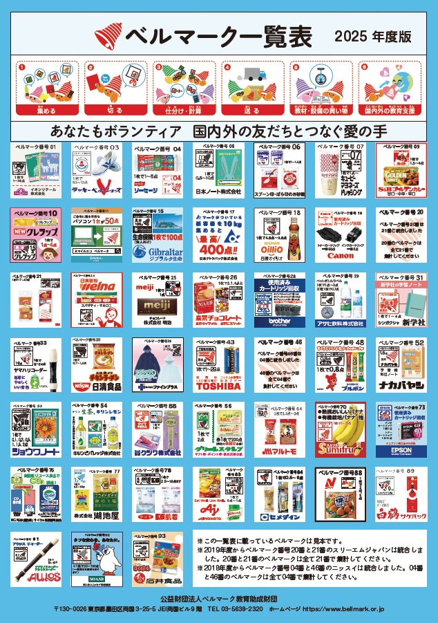 お買い物をされた際にはベルマークが付いているかご確認していただき、