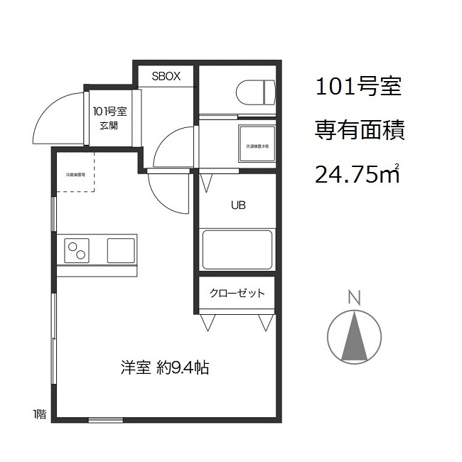 | 所在階/階数 | 1階 / 2階建 | 専有面積 | 24.75㎡ |